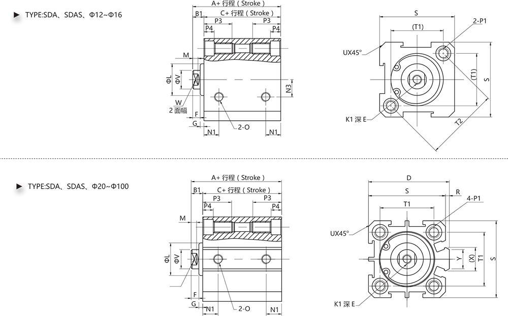 | Bore(mm) | 12 | 16 | 20 | 25 | 32 | 40 | 50 | 63 | 80 | 100 | ||