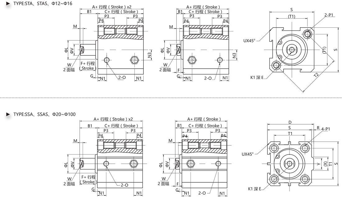 | Bore(mm) | O | P1 | P3 | P4 | R | S | T1 | T2 | U | V | W | X | Y | ||
