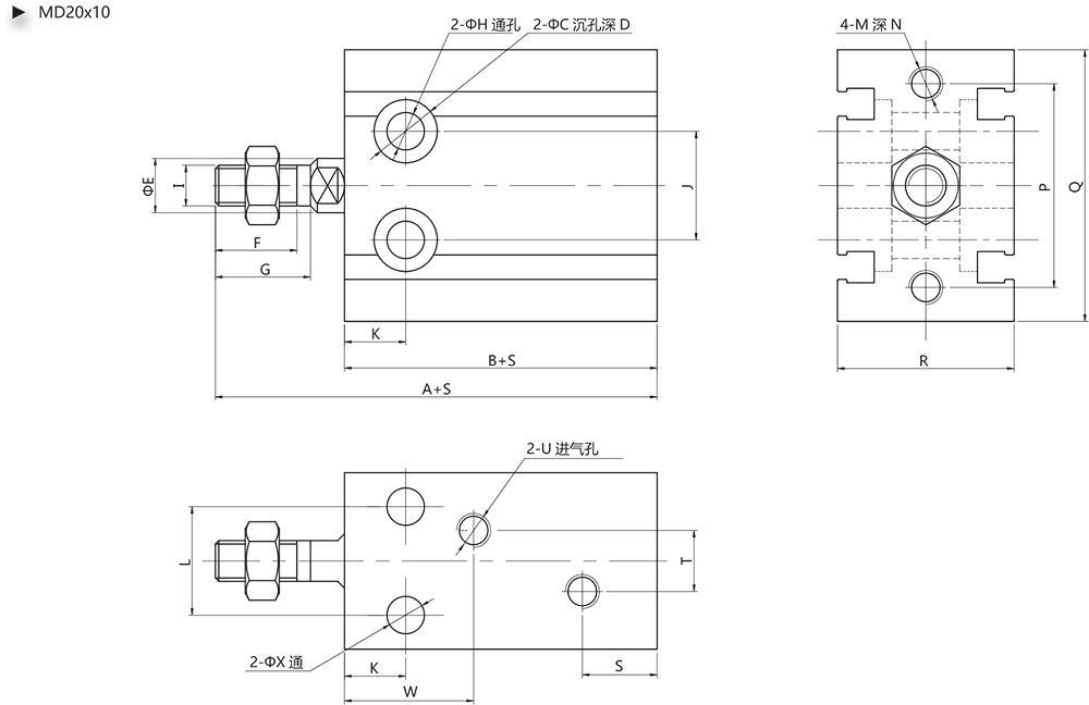 Thi is a special compact cylinder with multi-position instllation.The cylinder body has a variety fixing modes.The product is easy to install and occupies less space