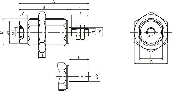 | LQJ16×5 | 36.5 | 21.5 | 5 | 19.5 | 12 | 15 | 5 | 27 | 20 | M22×1.5 | M5×0.8 | 6 |