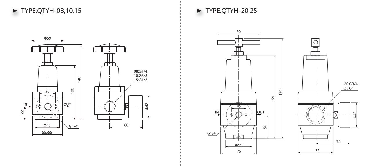 | Range of Adjustable Pressure | 0.05~3.0MPa | ||||