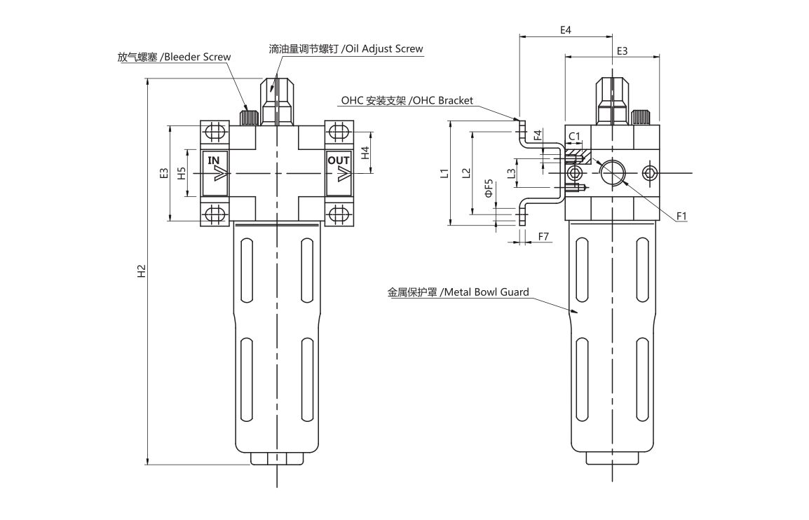 The oil drop rate is controlled by means of the regulating scew.normally,1 to 12 drops/1000L of the air is sufficient.
