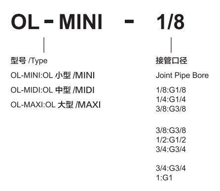 | OL-MINl-. | 40 | 39 | 2 | G1/8 G1/4 G3/8 | M4 | 4.5 | 44 | 35 | 11 | 17.5 | 20 |