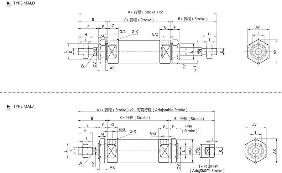 | Bore(mm) | A | A1 | B | C | E | F | G | H | I | J | K | L | M | T | U | V | W | X | AR | AX | AY |