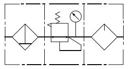 air of fluid oil,condensation and dirt particles.For special application,the standard 40μm filter element may easily be replaced by a 5μm filter element.The OR maintain imputting constant operating pressure despite fluctuation in line pressure and the amount of air consumed.