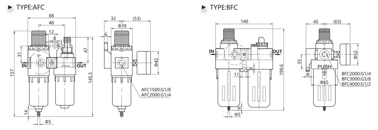 Filter&Regulator | AFR1500 | AFR2000 | BFR2000 | BFR3000 | BFR4000 |
