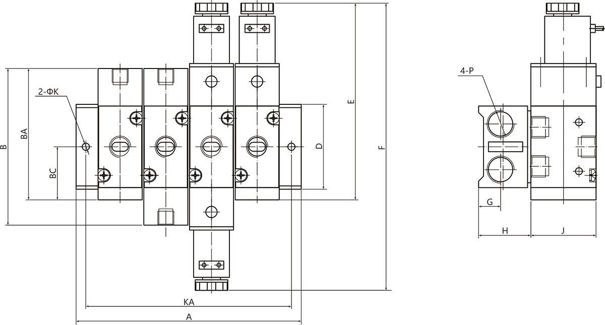 | 3V200M-□F | 23N+23 | 23N+11 | 83 | 69 | 24.5 | 4.5 | 45 | 112 | 166 | 9.5 | 23.5 | 35 | G1/4 |