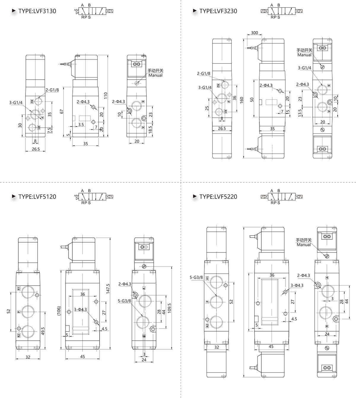| Joint Pipe Bore | Inlet air = Outlet air=G1/4 Exhaust=G1/8 | Inlet air = Outlet air=Exhaust=G3/8 | Inlet air = Outlet air=Exhaust=G1/8 | ||||||