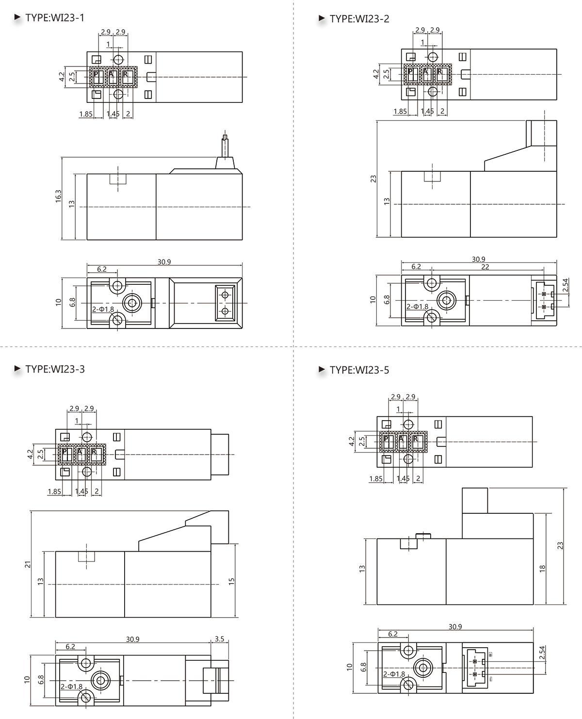 The valve is a two-position three-way 10mm miniature solenoid valve.Its intake direction is different from that of the conventional WF23 series valves.There are many different connection modes.When the power of the valve is 1W and the flow rate is more than 30L/min at 0.5MPa,the temperature rise is low,the performance is stable and the service life is long.
